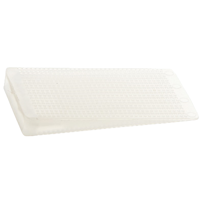 Description: Stabilizer Table Wedge, 2"L x 1-1/4"W x 1/4"H, stabilizes wobbly tables, hard, BPA free, plastic, translucent