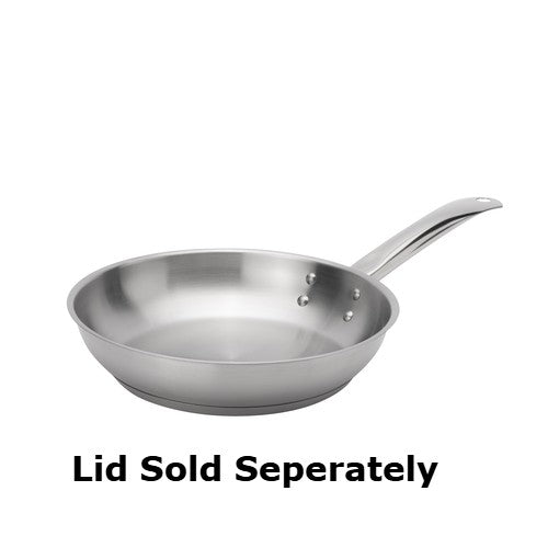 Description: Elements Fry Pan, 8" dia. x 1-3/5"H, riveted hollow cool touch handle, operates with gas/electric/ceramic/halogen/induction cooktops, oven safe, 4mm tri-ply base, stainless steel, natural finish, NSF