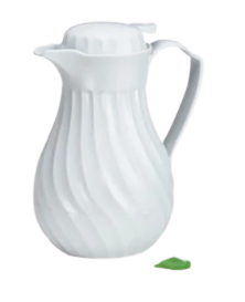 Description: Cash & Carry Connoisserve™ Coffee Decanter, 64 oz., thumb press, swirl design, triple wall insulation, color tag set included, hand wash only, plastic, white