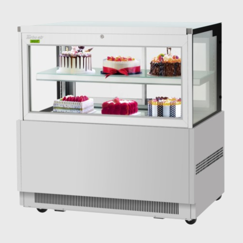 Description: Refrigerated Bakery Display Case, 47-1/4"W x 27-1/2"D x 44"H, 12.4 cu. ft. capacity, self-contained refrigeration with self-cleaning condenser, front glass opening, tempered glass side pannels, sliding rear doors, digital temperature controller, (1) adjustable tempered glass shelf with AL front & back edges, LED interior lighting, stainless steel exterior, 3" swivel casters (rear locking), R290 Hydrocarbon refrigerant, 3/4 HP, 115v/60/1-ph, 6.8 amps, cord with NEMA 5-15P, cETLus, ETL-Sanitation