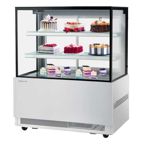 Description: Refrigerated Bakery Display Case, 47-1/4"W x 27-1/2"D x 51-7/8"H, 17.2 cu. ft. capacity, self-contained refrigeration with self-cleaning condenser, straight tempered glass front & side pannels, sliding rear doors, digital temperature controller, (2) adjustable tempered glass shelves with AL front & back edges, LED interior lighting, stainless steel exterior, 3" swivel casters (rear locking), R290 Hydrocarbon refrigerant, 3/4 HP, 115v/60/1-ph, 6.5 amps, cord with NEMA 5-15P, cETLus, ETL-Sanitation
