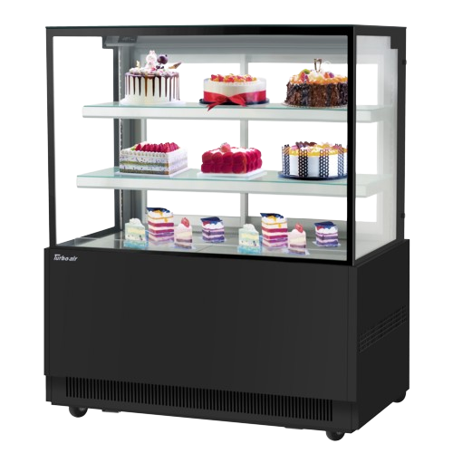 Description: Refrigerated Bakery Display Case, 47-1/4"W x 27-1/2"D x 51-7/8"H, 17.2 cu. ft. capacity, self-contained refrigeration with self-cleaning condenser, straight tempered glass front, tempered glass side pannels, sliding rear doors, digital temperature controller, (2) adjustable tempered glass shelves with AL front & back edges, LED interior lighting, specify exterior color, 3" swivel casters (rear locking), R290 Hydrocarbon refrigerant, 3/4 HP, 115v/60/1-ph, 6.5 amps, cord with NEMA 5-15P, cETLus, ETL-Sanitation
