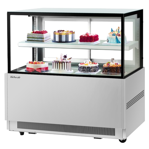Description: Refrigerated Bakery Display Case, 59"W x 27-1/2"D x 44"H, 15.7 cu. ft. capacity, self-contained refrigeration with self-cleaning condenser, straight tempered glass front & side pannels, sliding rear doors, digital temperature controller, (1) adjustable tempered glass shelf with AL front & back edges, LED interior lighting, stainless steel exterior, 3" swivel casters (rear locking), R290 Hydrocarbon refrigerant, 3/4 HP, 115v/60/1-ph, 6.5 amps, cord with NEMA 5-15P, cETLus, ETL-Sanitation