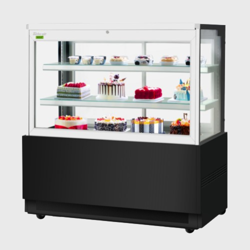 Description: Refrigerated Bakery Display Case, 59"W x 27-1/2"D x 51-7/8"H, 21.8 cu. ft. capacity, self-contained refrigeration with self-cleaning condenser, front glass opening, tempered glass side pannels, sliding rear doors, digital temperature controller, (2) adjustable tempered glass shelves with AL front & back edges, LED interior lighting, specify exterior color, 3" swivel casters (rear locking), R290 Hydrocarbon refrigerant, 3/4 HP, 115v/60/1-ph, 8.7 amps, cord with NEMA 5-15P, cETLus, ETL-Sanitation