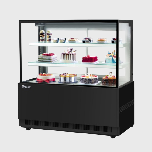 Description: Refrigerated Bakery Display Case, 59"W x 27-1/2"D x 51-7/8"H, 21.8 cu. ft. capacity, self-contained refrigeration with self-cleaning condenser, straight tempered glass front, tempered glass side pannels, sliding rear doors, digital temperature controller, (2) adjustable tempered glass shelves with AL front & back edges, LED interior lighting, specify exterior color, 3" swivel casters (rear locking), R290 Hydrocarbon refrigerant, 3/4 HP, 115v/60/1-ph, 6.8 amps, cord with NEMA 5-15P, cETLus, ETL-Sanitation