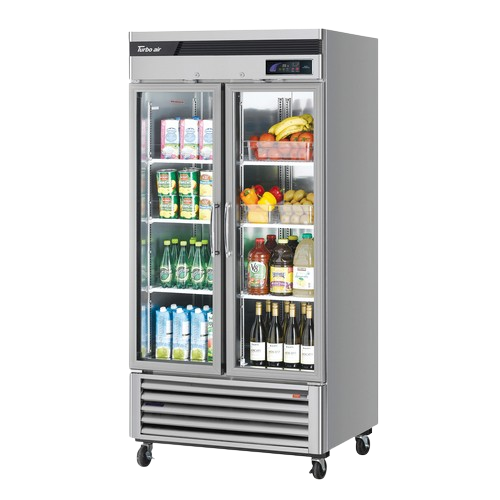Description: Super Deluxe Glass Door Refrigerator, two-section, 39-1/2"W x 31-7/8"D x 83-1/4"H, 29.19 cu. ft., self-contained, self-cleaning condenser device, front aluminum door frame, stainless steel top, sides & bottom grille, stainless steel interior, (2) hinged double pane glass doors with Low-E glass, LED interior lighting, (6) PE coated wire shelves, LED digital thermometer, door open beep, self-diagnostic monitoring system, turbo cooling, automatic fan motor delays, door locks, bottom mount compressor, R290 Hydrocarbon refrigerant, 1/3 HP, 115v/60/1-ph, 3.1 amps, NEMA 5-15P, cETLus, ETL-Sanitation, ENERGY STAR, Lead time applies