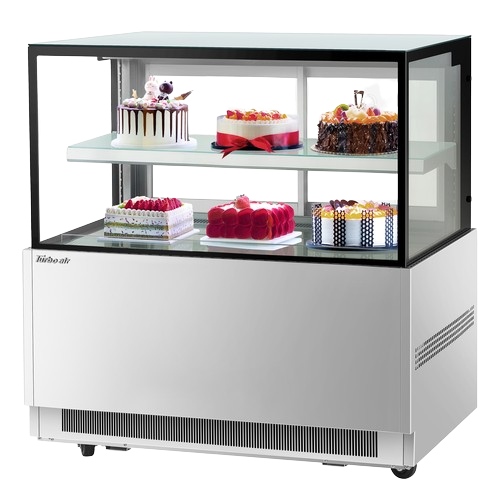 Description: Refrigerated Bakery Display Case, 47-1/4"W x 27-1/2"D x 44"H, 12.4 cu. ft. capacity, self-contained refrigeration with self-cleaning condenser, straight tempered glass front, tempered glass side pannels, sliding rear doors, digital temperature controller, (1) adjustable tempered glass shelf with AL front & back edges, LED interior lighting, stainless steel exterior, 3" swivel casters (rear locking), R290 Hydrocarbon refrigerant, 3/4 HP, 115v/60/1-ph, 6.3 amps, cord with NEMA 5-15P, cETLus, ETL-Sanitation