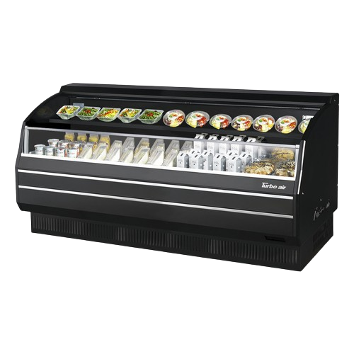 Description: Horizontal Open Display Merchandiser, low-profile, 14.8 cu. ft. capacity, 75-3/4"W x 33-1/2"D x 45-7/8"H, self-contained refrigeration, self-cleaning condenser, tempered glass front shield, solid side panels, (2) adjustable shelves, LED interior lighting under each shelf, specify interior, black panels, R290 Hydrocarbon refrigerant, (2) 3/4 HP, 115v/60/1-ph, 14.7 amps, cord with NEMA 5-20P, cETLus, ETL-Sanitation