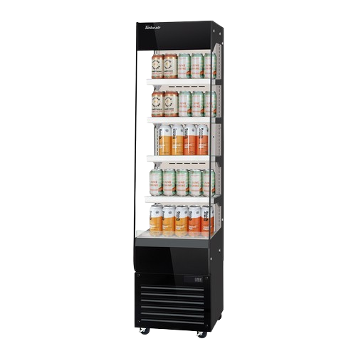 Description: Horizontal Open Display Merchandiser, slim-profile, 4.8 cu. ft. capacity, 19-5/8"W x 25-5/8"D x 72-1/2"H, self-contained refrigeration with self-cleaning condenser, tempered glass front shield & side panels, (4) adjustable tempered glass shelves + deck, digital temperature controller with defrost control, LED interior lighting, stainless steel interior, front air intake & rear air discharge, 2-1/2" swivel casters (2 locking), R290 Hydrocarbon refrigerant, 3/4 HP, 115v/60/1-ph, 12.3 amps, cord with NEMA 5-20P, cETLus, ETL-Sanitation (contact sales for lead time)