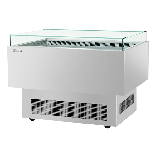 Description: Open Display Sandwich & Cheese Merchandiser, 50"W x 35-3/8"D x 34"H, 2.48 load line cu. ft. capacity, self-contained refrigeration with self-cleaning condenser, digital temperature controller, single pane tempered glass, bottom lit LED interior lighting, stainless steel airflow grille, stainless steel exterior, 3" swivel casters (2 with brakes), R290 Hydrocarbon refrigerant, 1/3 HP, 115v/60/1ph, 8.0 amps, cord with NEMA 5-15P, cETLus, ETL-Sanitation