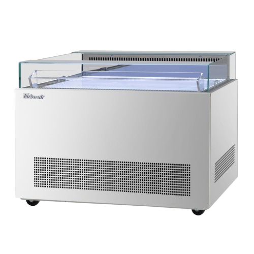 Description: Open Display Sandwich & Cheese Merchandiser, 50-1/4"W x 35-3/8"D x 30-7/8"H, 2.35 cu. ft., capacity, self-contained refrigeration with self-cleaning condenser, digital temperature controller, single pane tempered glass, bottom lit LED interior lighting, stainless steel exterior, deck & airflow grille, specify exterior color, 3" swivel casters (2 with brakes), R290 Hydrocarbon refrigerant, 1/3 HP, 115v/60/1ph, 7.0 amps, cord with NEMA 5-15P, cETLus, ETL-Sanitation