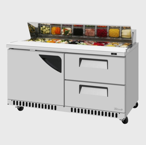 Description: Super Deluxe Sandwich/Salad Unit, Front Breathing airflow, two-section, 14.8 cu. ft., 60-1/4"W x 30"D x 37"H, stainless steel top with 16-pan opening, (1) stainless steel door, (2) drawers, stainless steel interior & exterior (galvanized steel back & bottom), (1) stainless steel wire shelf, self-cleaning condenser equipped, cutting board side rail, R290 Hydrocarbon refrigerant, 1/5 HP, 115v/60/1-ph, 8.9 amps, NEMA 5-15P, cETLus, ETL-Sanitation (contact sales for lead time)