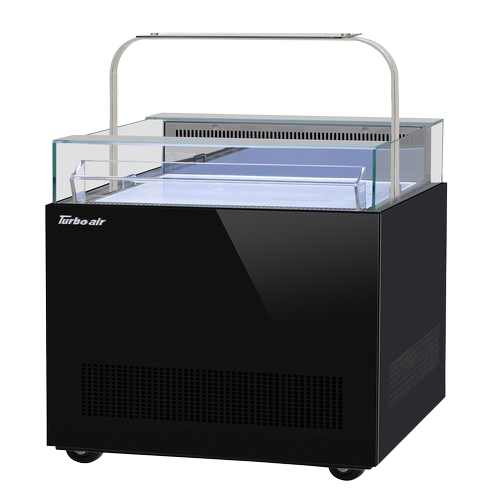 Description: Open Display Sandwich & Cheese Merchandiser, with glass sneeze guard, 30-1/4"W x 35-3/8"D x 40-1/4"H, 1.31 cu. ft., capacity, self-contained refrigeration with self-cleaning condenser, digital temperature controller, single pane tempered glass, bottom lit LED interior lighting, glass top shelf with stainless steel frame, stainless steel deck & airflow grille, specify exterior color, 3" swivel casters (2 with brakes), R290 Hydrocarbon refrigerant, 1/3 HP, 115v/60/1ph, 8.0 amps, cord with NEMA 5-15P, cETLus, ETL-Sanitation