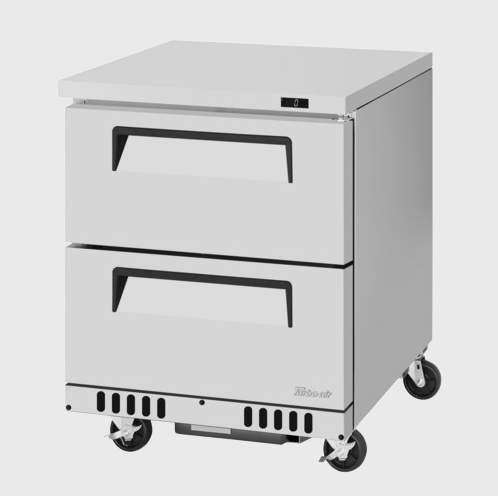 Description: Super Deluxe Series Undercounter Freezer, front breathing airflow, one-section, 11.1 cu. ft., 27-1/2"W x 30"D x 30"H, (2) drawers, stainless steel interior & exterior (galvanized steel back & bottom), self-cleaning condenser equipped, R290 Hydrocarbon refrigerant, 1/4 HP, 115v/60/1-ph, 4.5 amps, NEMA 5-15P, cETLus, ETL-Sanitation (contact sales for lead time)