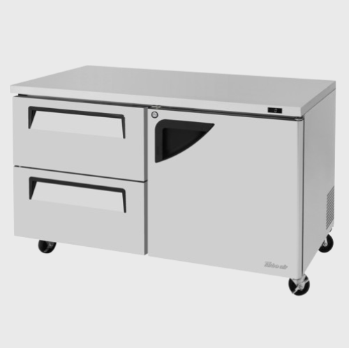 Description: Super Deluxe Series Undercounter Freezer, two-section, 60-1/4"W x 30"D x 30"H, 17.2 cu. ft., self-contained rear mount refrigeration system with self-cleaning condenser, (2) drawers on left, (1) right hinged door on right, (1) stainless steel wire shelf, stainless steel top, front & sides (galvanized steel back & bottom), stainless steel interior with ABS door liner, R290 Hydrocarbon refrigerant, 1/2 HP, 115v/60/1-ph, 8.0 amps, cord with NEMA 5-15P, cETLus, ETL-Sanitation (contact sales for lead time)
