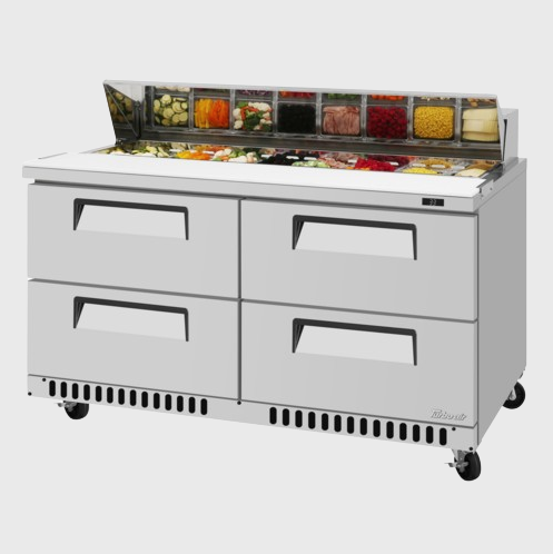 Description: Super Deluxe Series Undercounter Refrigerator, Front Breathing airflow, two-section, 14.8 cu. ft., 60-1/4"W x 30"D x 37"H, (4) drawers, stainless steel interior & exterior (galvanized steel back & bottom), self-cleaning condenser equipped, R290 Hydrocarbon refrigerant, 1/5 HP, 115v/60/1-ph, 8.9 amps, NEMA 5-15P, cETLus, ETL-Sanitation (contact sales for lead time)