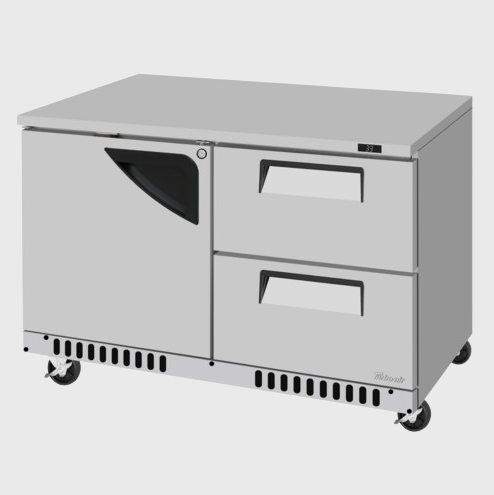 Description: Super Deluxe Series Undercounter Refrigerator, Front Breathing airflow, two-section, 11.1 cu. ft., 48-1/4"W x 30"D x 30"H, (1) solid hinged swing door with lock, (2) drawers, (1) stainless steel wire shelf, stainless steel interior & exterior (galvanized steel back & bottom), self-cleaning condenser equipped, R290 Hydrocarbon refrigerant, 1/5 HP, 115v/60/1-ph, 6.5 amps, NEMA 5-15P, cETLus, ETL-Sanitation (contact sales for lead time)