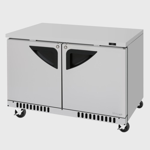 Description: Super Deluxe Series Undercounter Refrigerator, Front Breathing airflow, two-section, 11.1 cu. ft., 48-1/4"W x 30"D x 30"H, (2) solid hinged swing doors, stainless steel interior & exterior (galvanized steel back & bottom), (2) stainless steel wire shelves, self-cleaning condenser equipped, R290 Hydrocarbon refrigerant, 1/5 HP, 115v/60/1-ph, 6.5 amps, NEMA 5-15P, cETLus, ETL-Sanitation (contact sales for lead time)