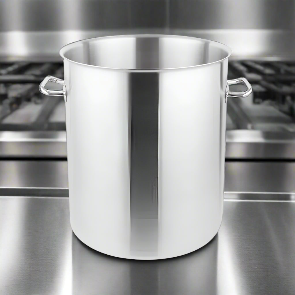 Description: Intrigue Stock Pots, 38 quart, 19.63"W x 14.57"D x 14.01"H, 14.567 in diameter, induction ready, oven- and dishwasher-safe, 18-8 Stainless Steel, NSF, JP Lifetime Warranty