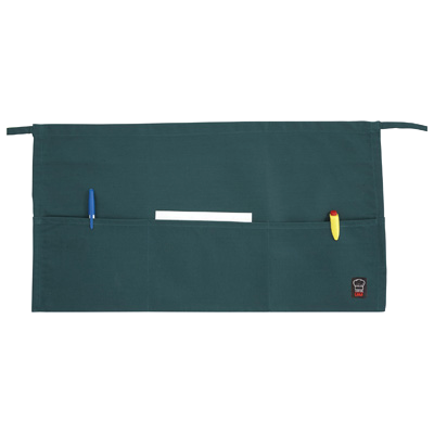 Description: Waist Apron, 21-3/4"L x 12-1/2"W, (3) pockets, machine wash and dry, wrinkle resistant, cotton/poly blend, Signature Chef, green