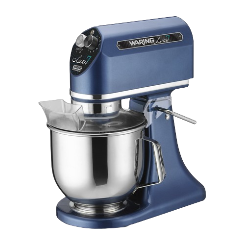 Description: Luna Planetary Mixer, countertop, 7 qt. capacity, (11) mixing speeds, front mounted variable speed control dial, tilt-back head release/lift lever, removable clear-view splash guard with feed chute, includes: stainless steel bowl, whisk & dough hook, and mixing paddle, rubber feet, gear driven 1/2 HP, 350 watts, 120v/60/1-ph, 4.2 amps, cord, NEMA 5-15P, NSF, cETLus