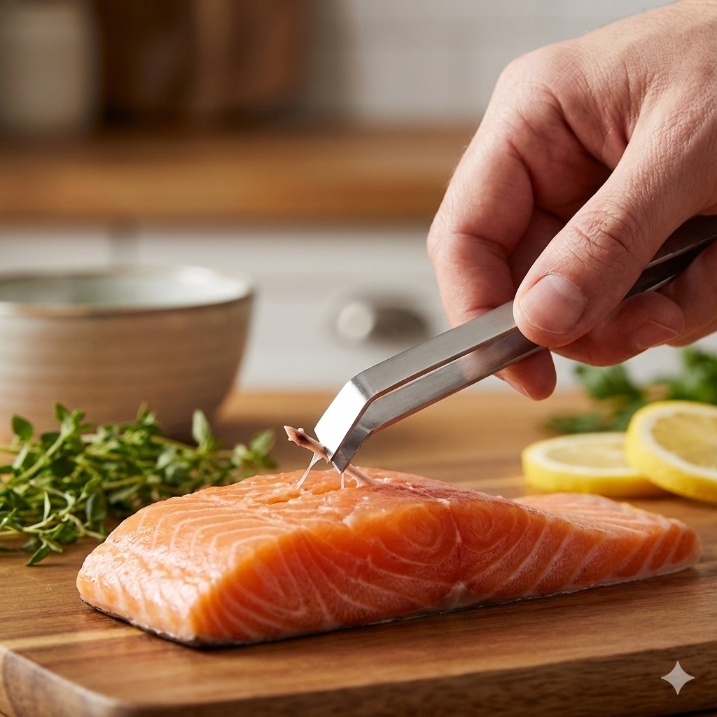 Description: Fish Bone Tweezers, straight tip, dishwasher safe, stainless steel