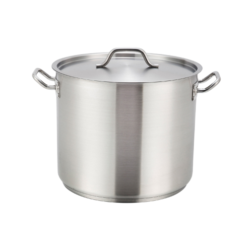 Description: Premium Induction Stock Pot, 60 qt., 17-3/4" dia. x 14-1/4"H, round, with cover, welded handles, tri-ply heavy duty bottom, with aluminum core, 18/8 stainless steel, NSF