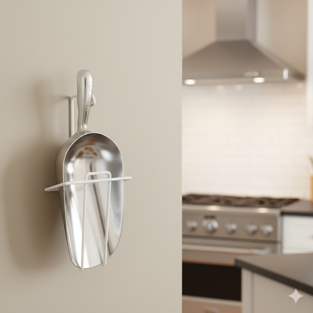 Description: Scoop Holder, 7" x 8", wall mounted, plastic coated wire (holds AS-38, AS-58, PS-32, PS-50)