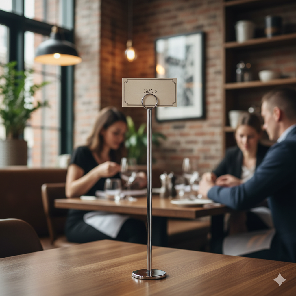 Description: Table Number Holder, 15"H, chrome-plated steel, mirror finish