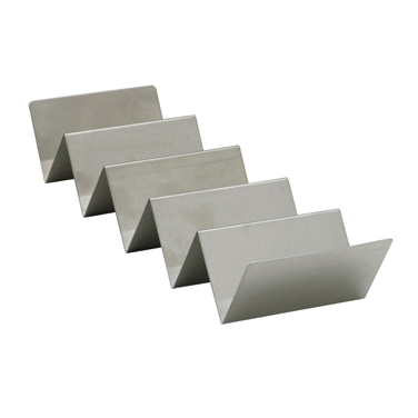 Description: Taco Holder, 14"L x 4"W x 2"H, holds 4-5 tacos, stainless steel, brushed finish