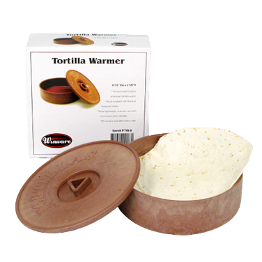 Description: Tortilla Warmer, 8-1/2" dia. x 2-5/8"H, round, with recessed handle, BPA free, polypropylene, brown, NSF