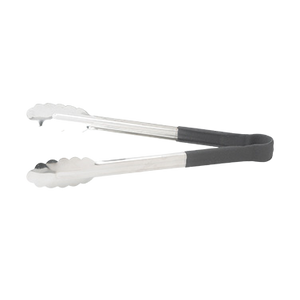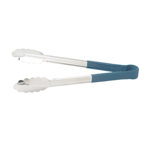 Description: Utility Tongs, 9", 1 pc., non-slip, heat resistant up to 220°F, polypropylene coated handle, stainless steel, blue