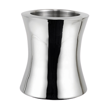 Description: Wine Cooler, 60 oz., 6" dia. x 7"H, double walled, hourglass shape, stainless steel, mirror finish