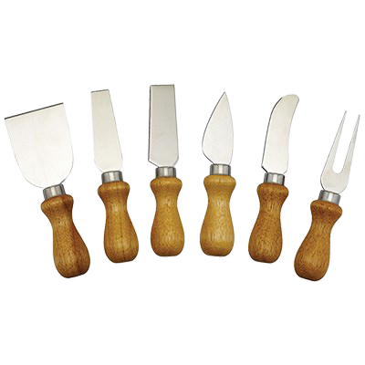 Description: Cheese Knife Set, with wooden handles, stainless steel blades, includes: (6) knives