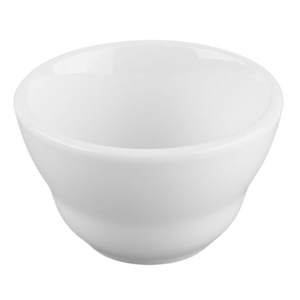 Description: Recovery Bouillon Cup, 7-1/4 oz., 4" dia. x 2-1/2"H, round, rolled edge, dishwasher, oven and microwave safe, ceramic, American white (sold by case)